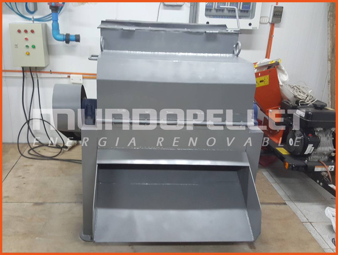 Descripción: Este equipo es diseñado para triturar por medio de golpes que giran mediante un eje de resistencia, el cual va moliendo el producto (chip) para convertirlo en aserrín. Tiene una producción de 300-400 k/h.
